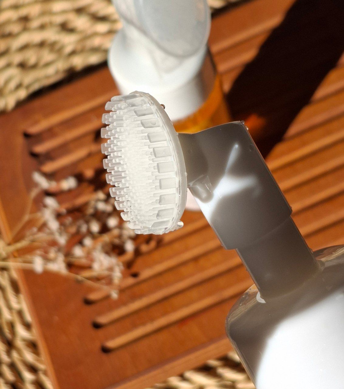 🧼 همراه با براش سیلیکونی نرم برای پاکسازی ملایم و ماساژ پوست